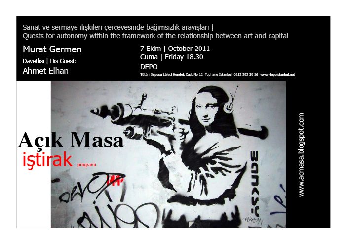 This week Açık Masa’s guest Ali Artun will open to discussion the following questions: “How is contemporary art articulated to contemporary politics and culture? In our time are there possibilities for art to resist?”