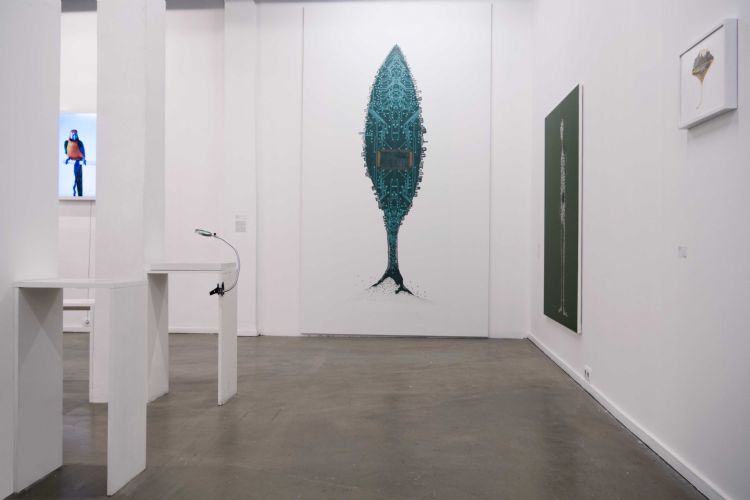 Fahrettin Örenli‘s solo show “High Heels” relates to two subjects. The first one is “City as a living organic structure and a control tower/platform carrying mass information”. The second one is “Money and creative processes of money making”.