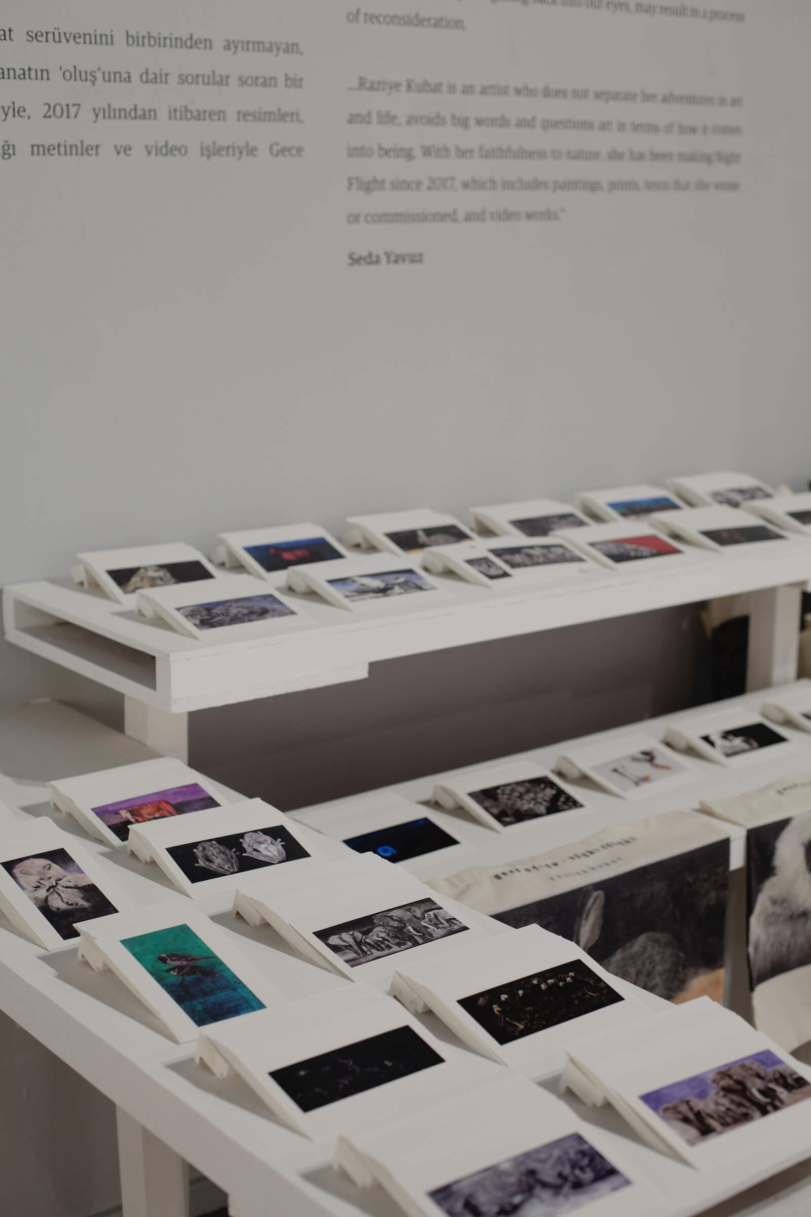 Raziye Kubat’s Night Flight, an exhibition that carries influences from her recent artistic process and the ever-changing state of her country and the World through the years of 2017 – 2021, will be on view at Depo. The exhibition presents paintings, video works, audiobooks, etchings, as well as elements designed to benefit the lives of stray animals and children.